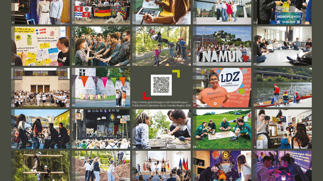 Der neue Wandkalender der Großregion ist erschienen. Er zeigt Motive zum Thema "Aktiv und kreativ – Junge Menschen in der Großregion" aus allen Teilen der Großregion. Das Besondere an diesem Kalender ist die grenzüberschreitende Zusammenarbeit vieler Akteure bei diesem Projekt.